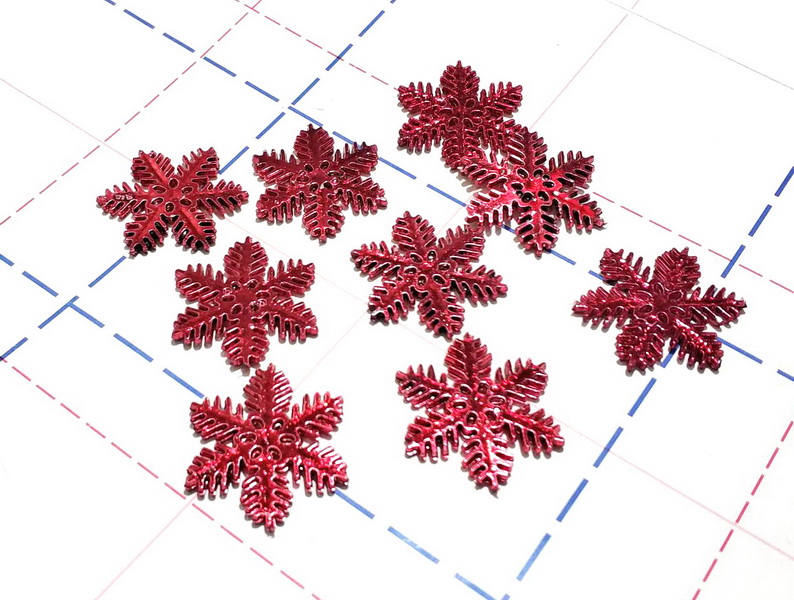 - 008 Кабошон Снежинка 32мм красный металлик