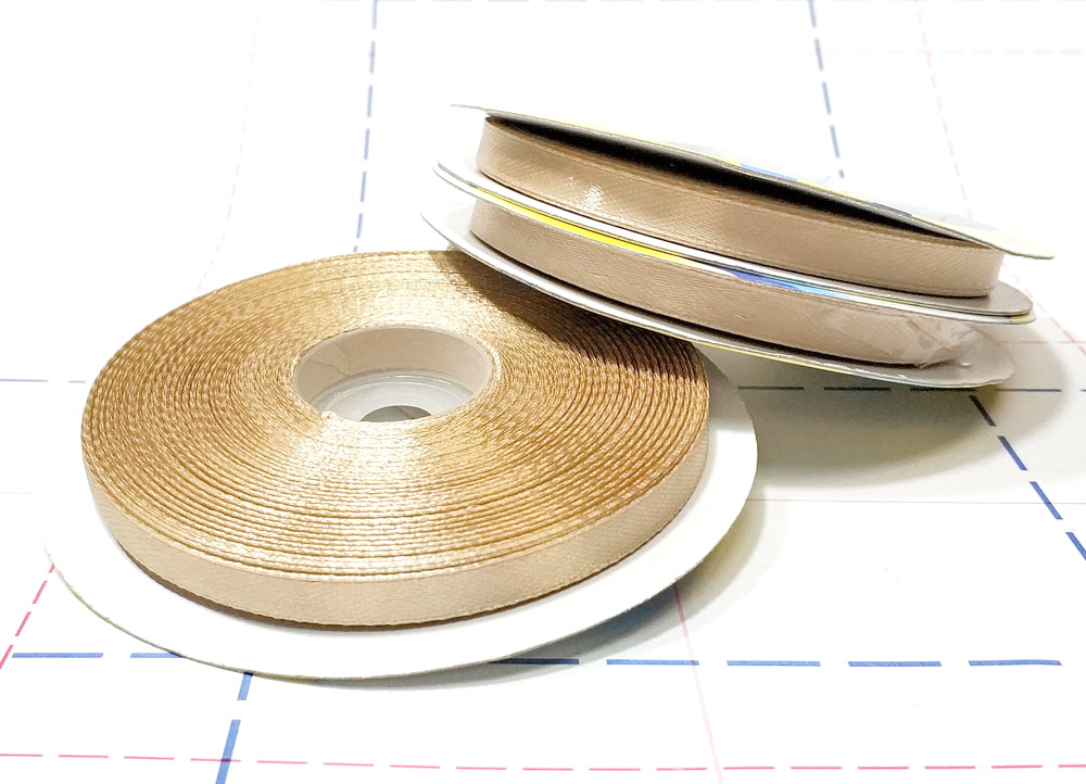 - 008 Лента атласная 6 мм 33м/боб (+-1м) оттенок золтисто-бежевого