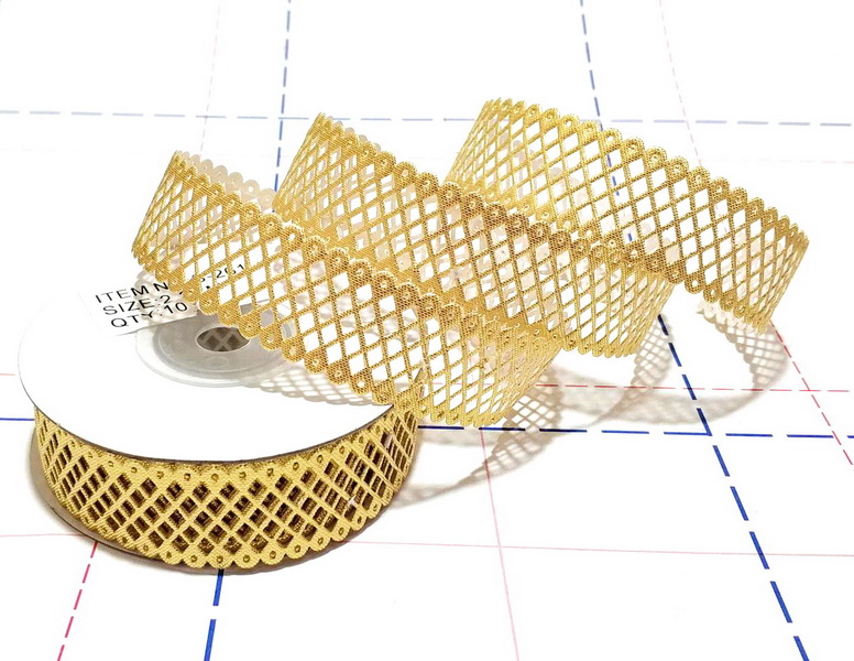 - 01 Лента декоративная 23мм Сетка 9,1м/боб(+-0,3м) Золото