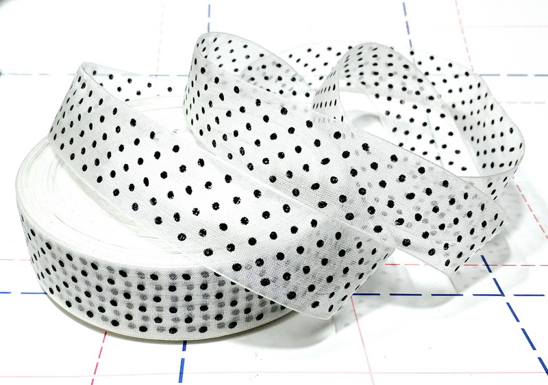 - 01 Лента Органза Горох 25мм Белый/черный