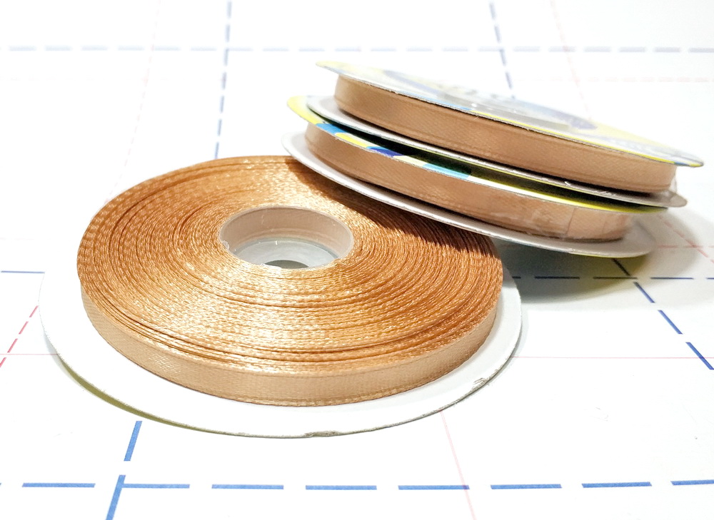 - 010 Лента атласная 6 мм 33м/боб (+-1м) оттенок золотисто-бежевого