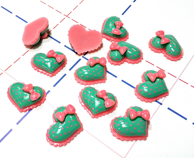 - 017 Кабошон Сердечко с бантиком 20*17 тиффани/коралл