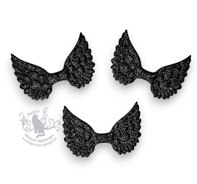 - 02 Крылья Патч блестки 45*30 мм Черный