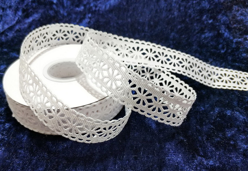 - 02 Лента декоративная 20мм Цветочки 18,3 м/уп (+-1м) Белый