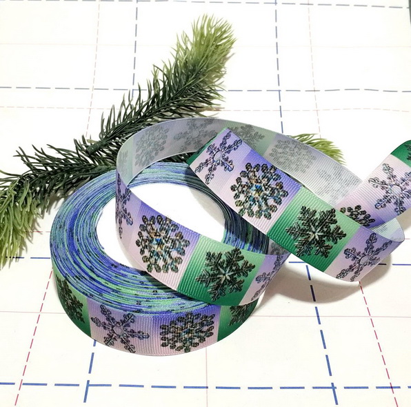 - 020 25мм Репсовая лента с рисунком 23м/боб (+-1м) Снежинки объемные