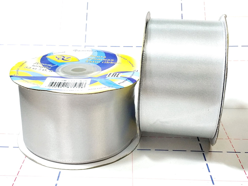 - 021 Лента атласная 50мм 33м (+-1м) оттенок бледно-серого