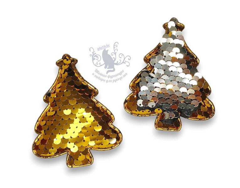 - 03 Елка 3Д Патч Двусторонние пайетки 52*77 мм золото/серебро