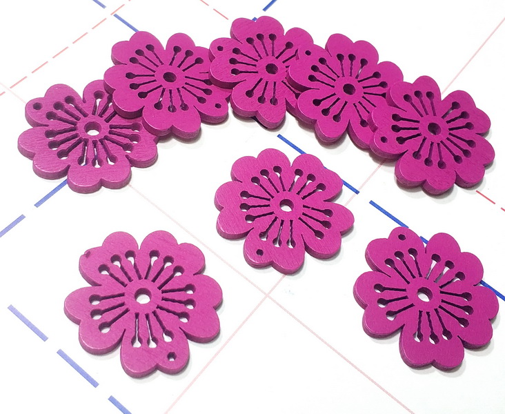 - 03 Фигурка деревянная Цветок 3см Фуксия