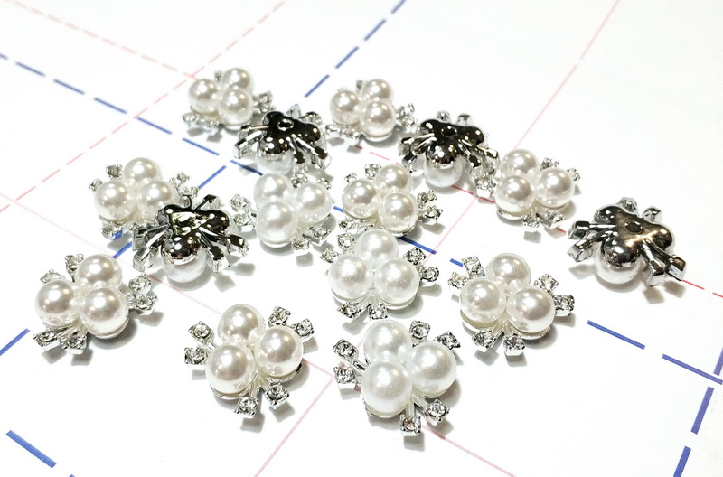 - 039 Серединка пластик Флоризель 21мм 6страз 3жемч Серебро