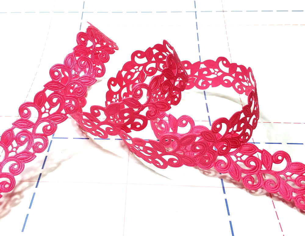 - 04 Лента декоративная 25мм Цветочный узор-1 18,3м/боб Малиновый
