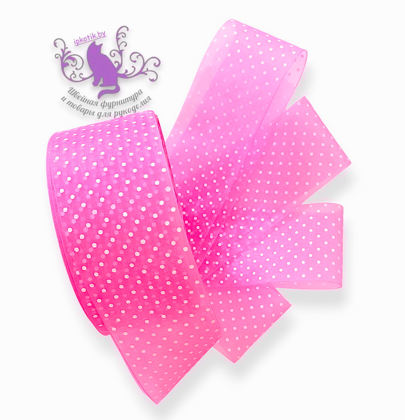 - 04 Лента Органза Горох 50мм розовый/белый
