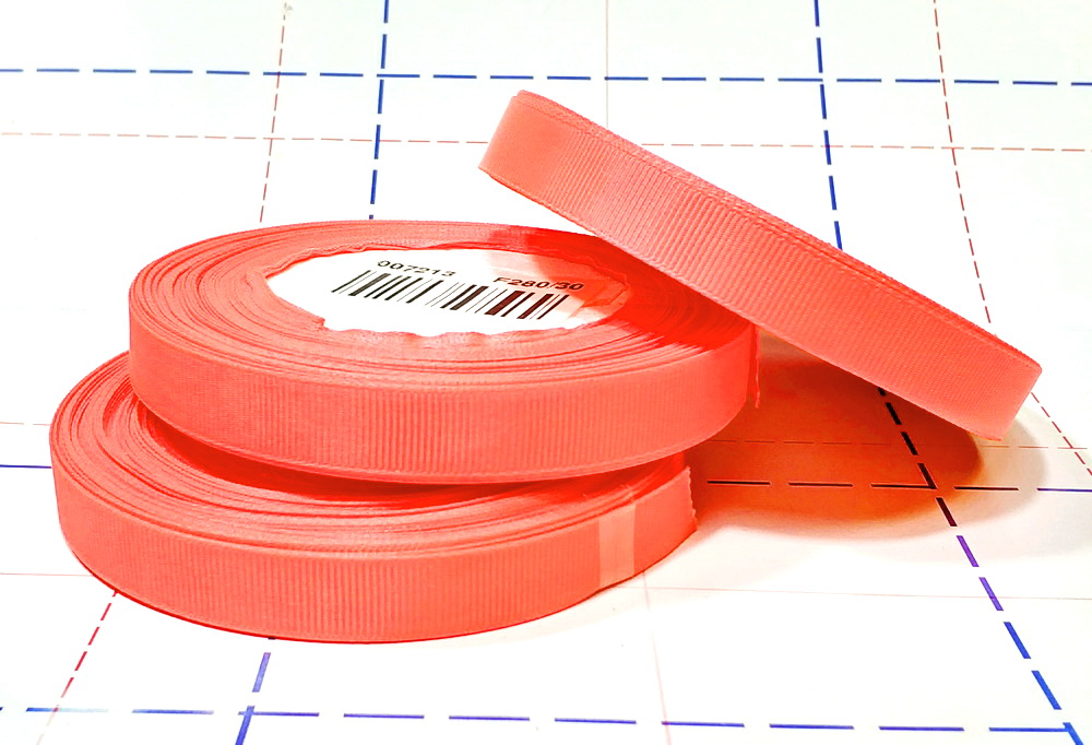 - 04 Лента репсовая 12мм 18,3м/боб (+-1м) оттенок Морковного флюор