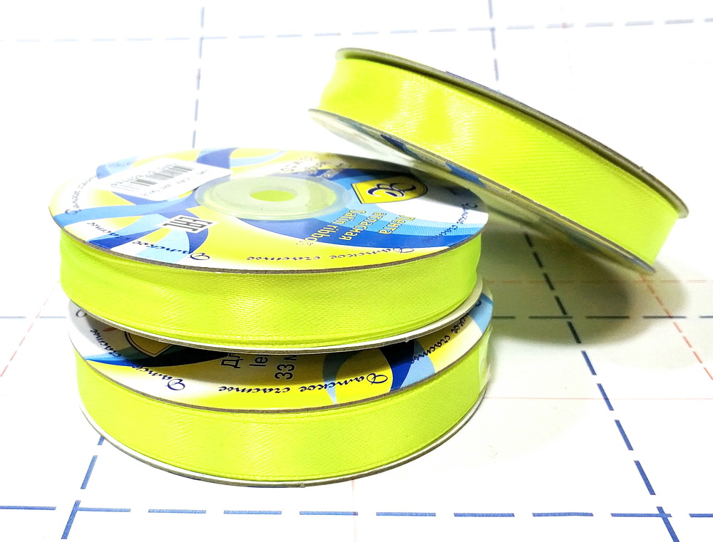 - 046 Лента атласная 12 мм 33 м/боб (+-1м) оттенок желтый неон