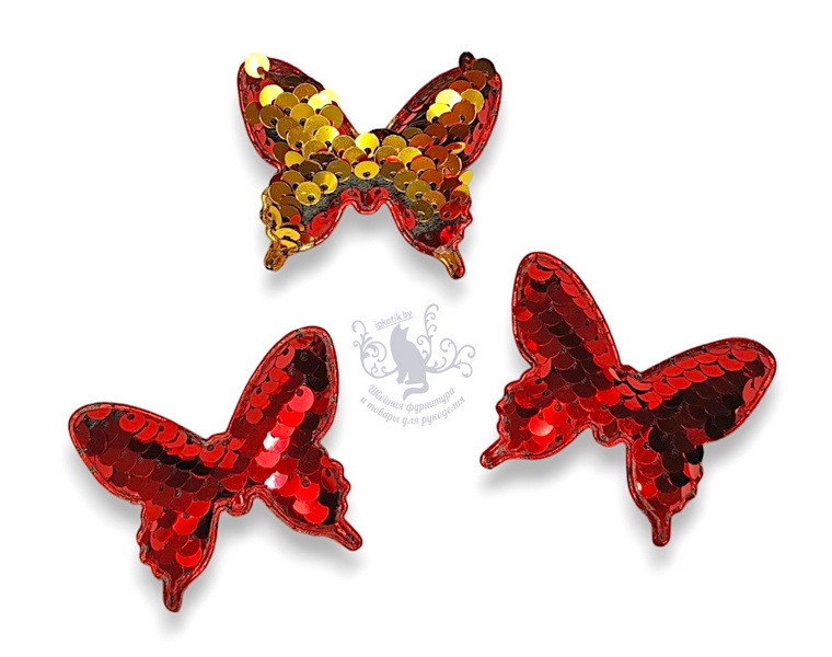- 05 Бабочка 3Д Патч Двусторонние пайетки 50*40 мм красный/золото