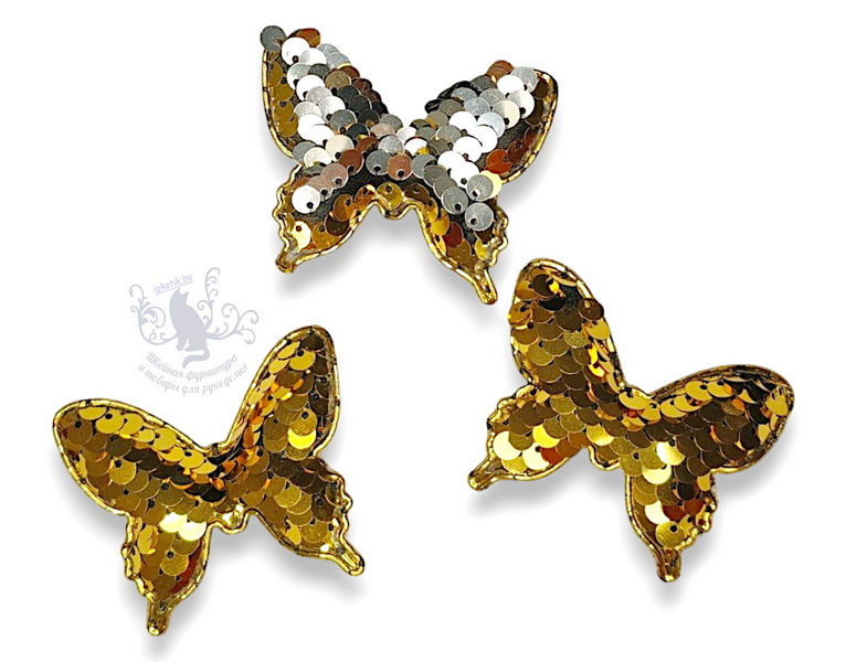 - 05 Бабочка 3Д Патч Двусторонние пайетки 50*40 мм золото/серебро