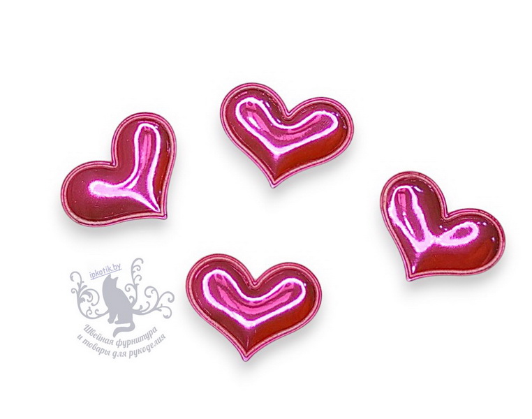 - 05 Сердце 3Д Патч кожзам глянец 36*30 мм фуксия