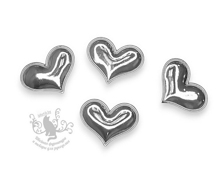 - 05 Сердце 3Д Патч кожзам глянец 36*30 мм серебро