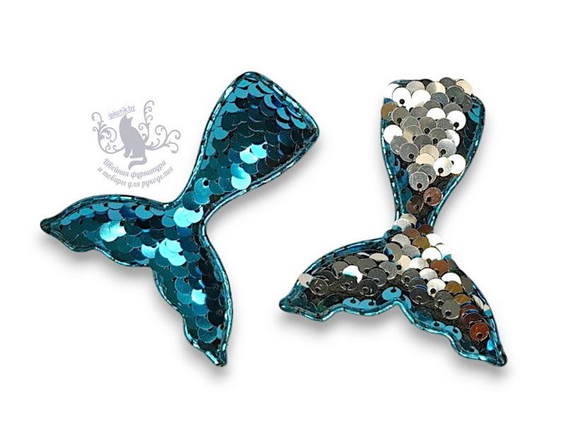 - 06 Хвост русалки 3Д Патч Двусторонние пайетки 60*50 мм бирюзовый/серебро
