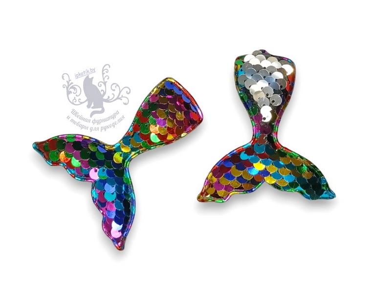 - 06 Хвост русалки 3Д Патч Двусторонние пайетки 60*50 мм разноцвет/серебро