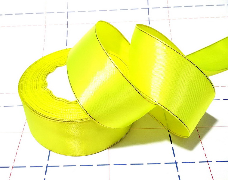 - 06 Лента атласная с люрексом 40мм золото 23м/боб (+-1м) оттенок Лимон неон