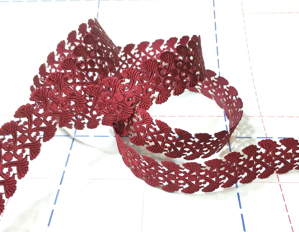 - 06 Лента декоративная 25мм Цветочный узор-2 9,1м/боб Бордовый