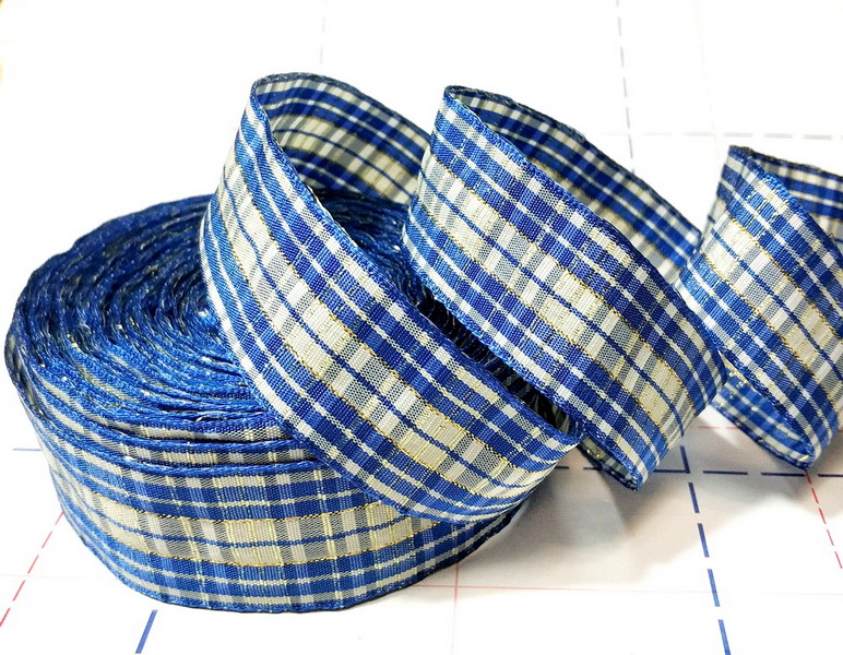 - 06 Лента декоративная 30мм Клетка 25м/боб Синий