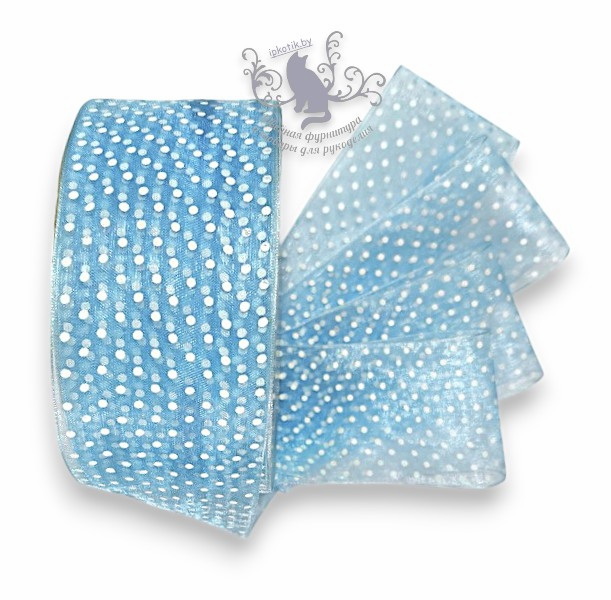 - 06 Лента Органза Горох 50мм Голубой/белый
