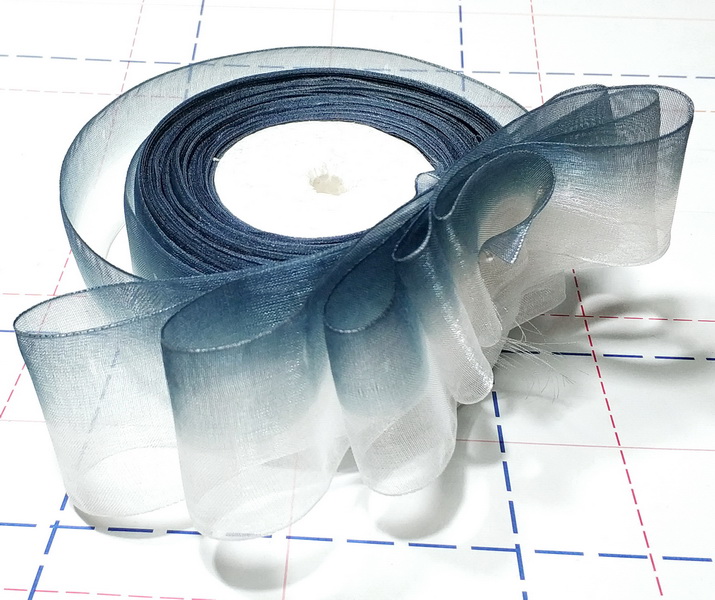 - 06 Лента Органза Градиент 40мм 45,72м/боб (+-1м) Темно-синий/белый
