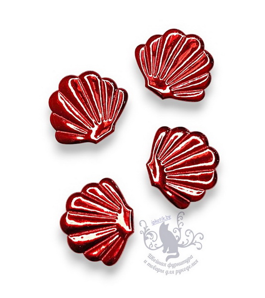 - 06 Ракушка 3Д Патч кожзам глянец 40*45 мм красный