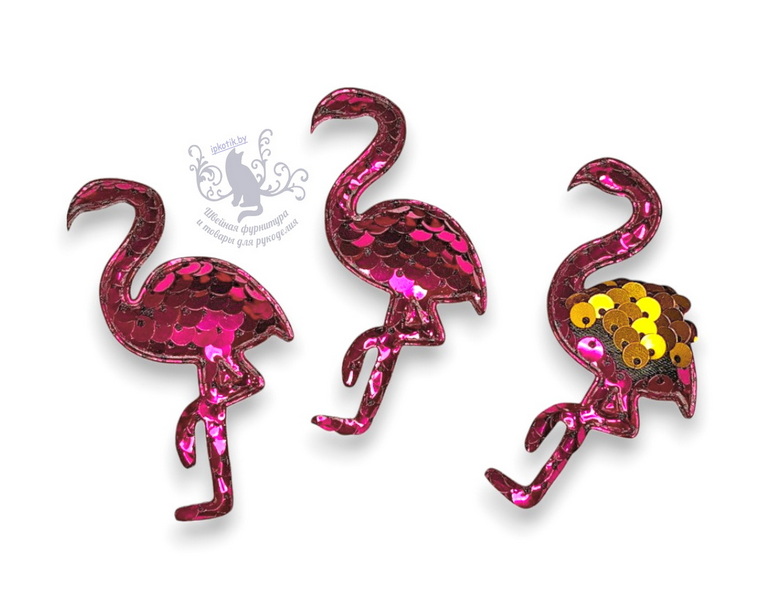 - 07 Фламинго 3Д Патч Двусторонние пайетки 60*40 мм фуксия/золото