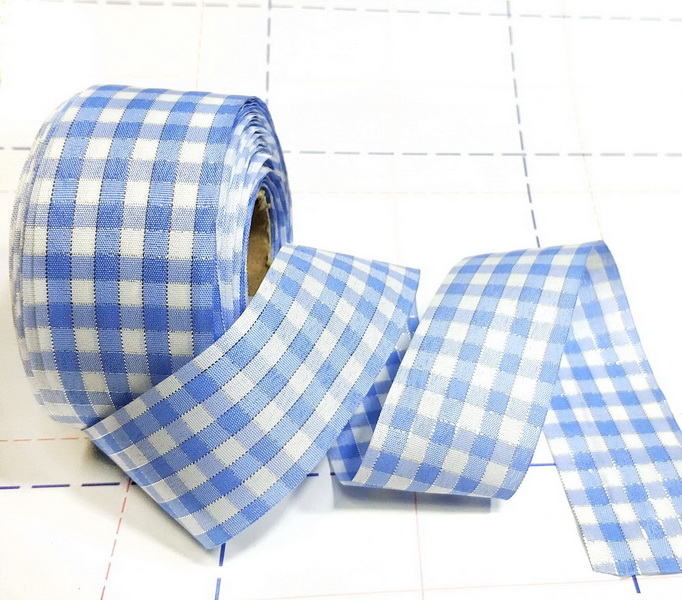 - 07 Лента декоративная 40мм Клетка 45,72м/боб Голубой