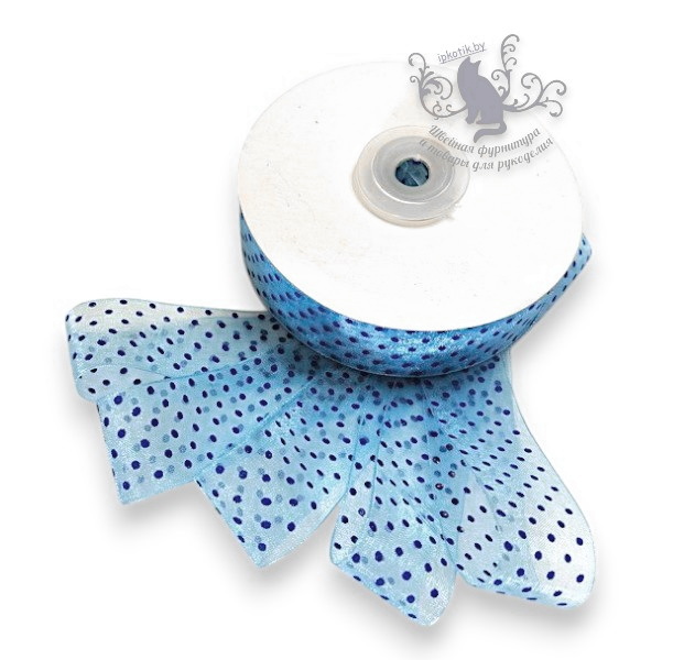 - 07 Лента Органза Горох 25мм Голубой/синий
