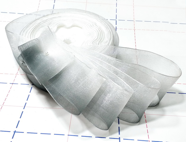 - 07 Лента Органза Градиент 40мм 45,72м/боб (+-1м) Серый/белый