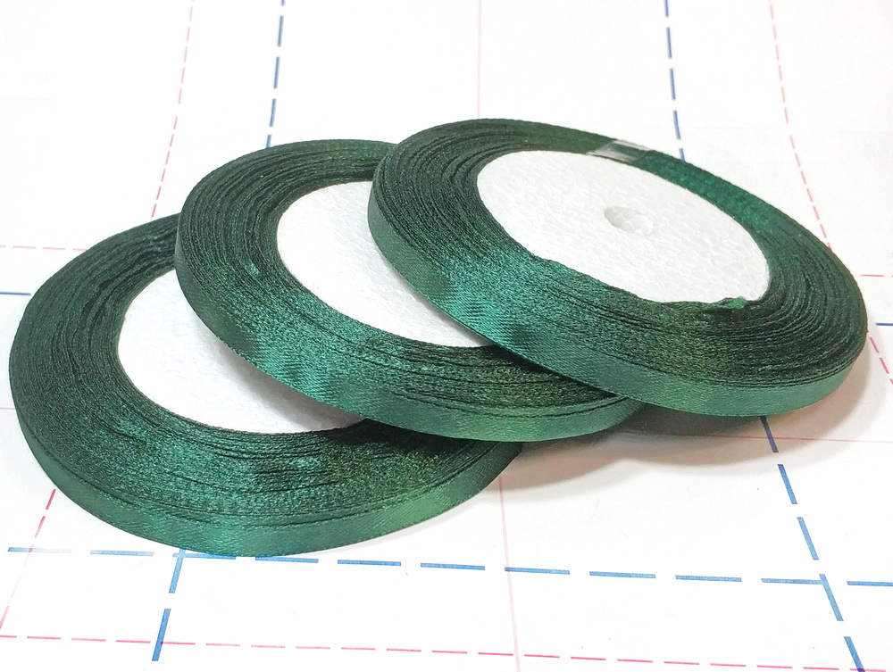 - 073 Лента атласная 6 мм 27м (+-1м) оттенок изумрудного