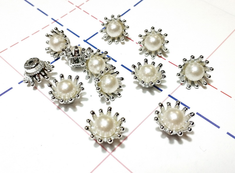 - 078 Серединка пластик Флоризель 13мм жемчуг Серебро