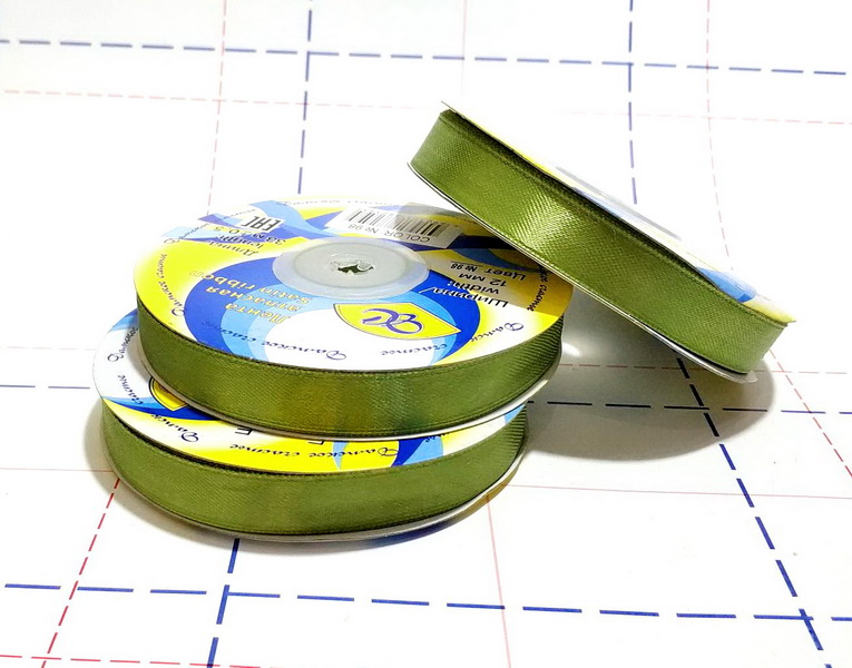 - 084 Лента атласная 12 мм 33 м/боб (+-1м) оттенок салатового