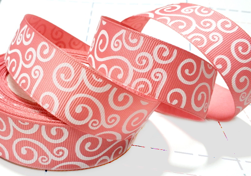 Назад 086 25мм Репсовая лента с рисунком 23м (+-1м) Витушки Персик/белый