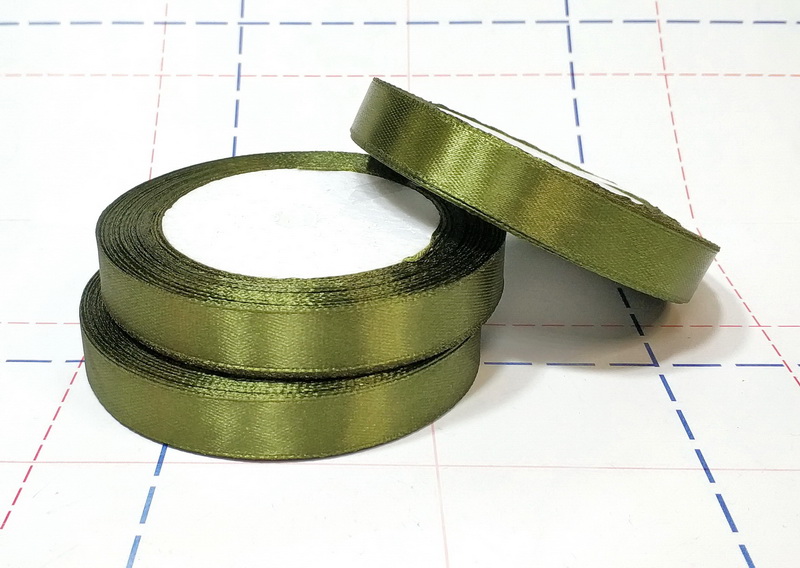 Назад 089 Лента атласная 12 мм 23м (+-1м) оттенок оливкового