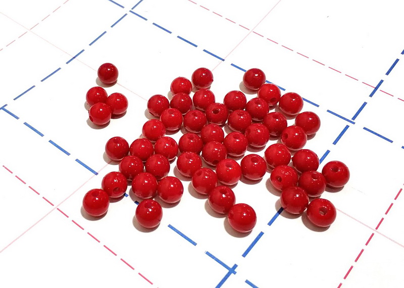 - 09 Бусы Жемчуг пластик 8мм 50шт/уп Алый