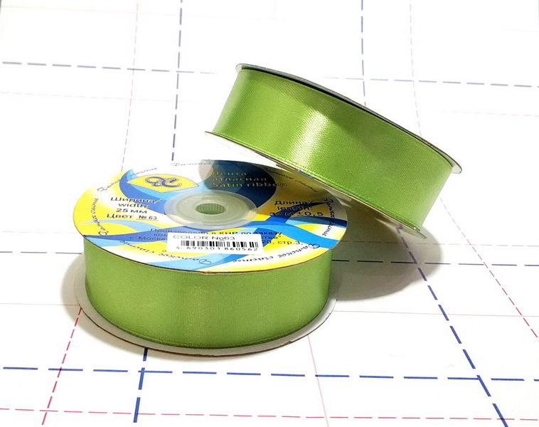 Назад 093 Лента атласная 25мм 33м (+-1м) оттенок светло-оливкового