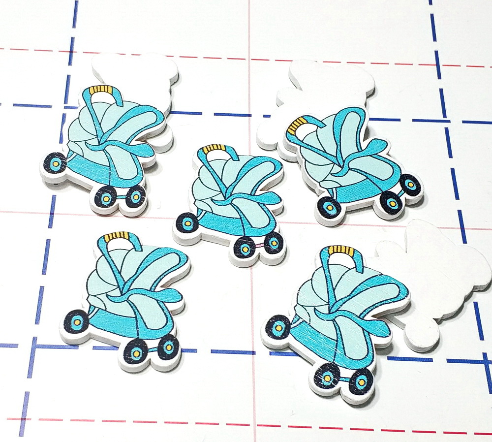 - 10 Фигурка деревянная Коляска 35мм Голубой