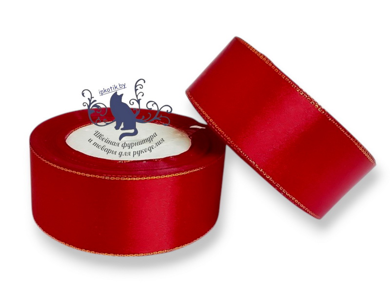 - 10 Лента атласная с люрексом 40мм золото БОБИНА 23м/боб (+-1м) Красный
