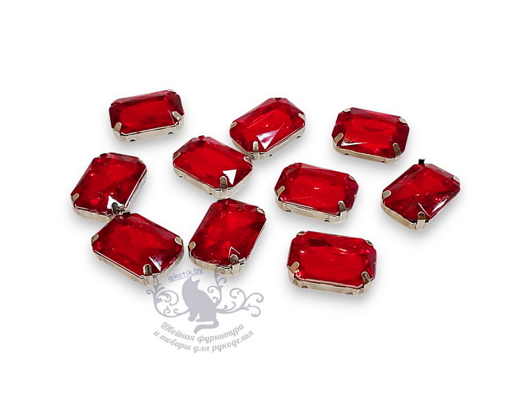 - 10*14 мм Стразы в металлической оправе Прямоугольник Серебро/красный