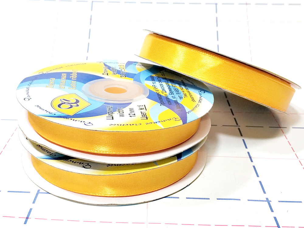 Назад 105 Лента атласная 12 мм 33 м/боб (+-1м) оттенок темно-желтого