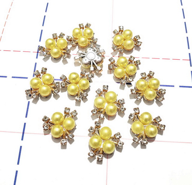 - 108 Серединка пластик Флоризель 21мм, 6стр/3жемч Золото/желтый