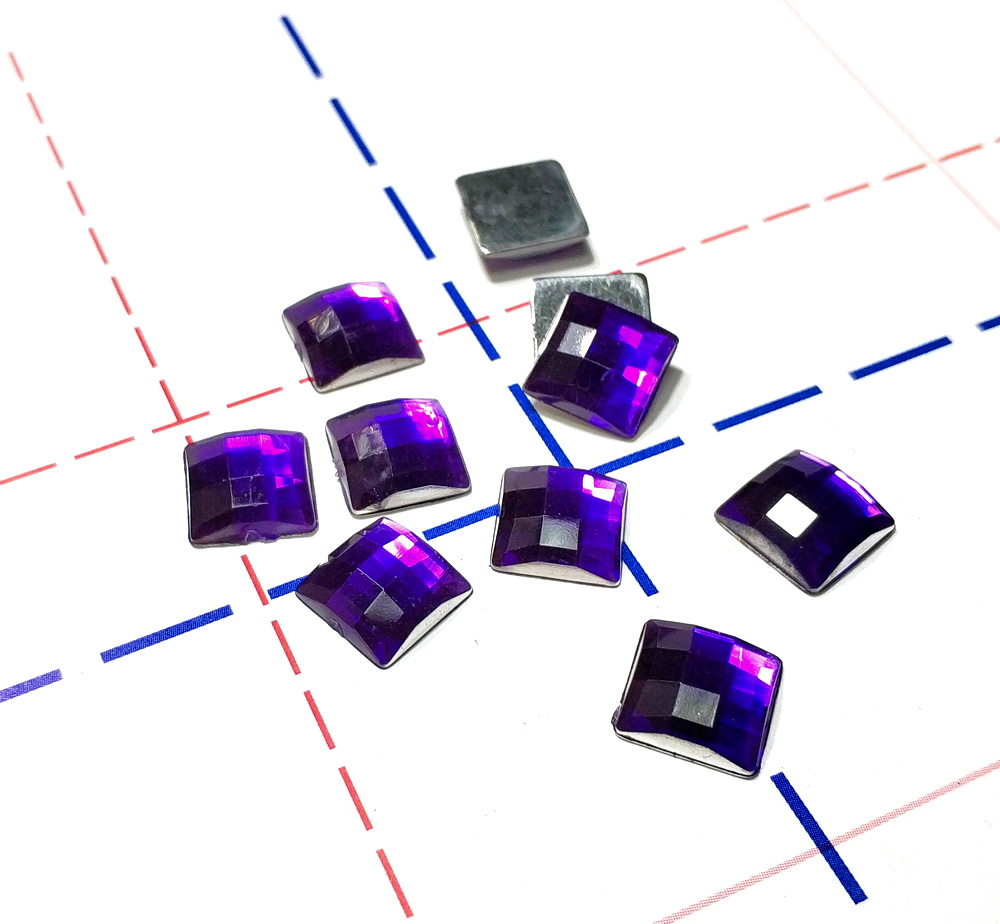 - 10мм Стразы клеевые тип Г Квадрат 10шт/уп Фиолетовый