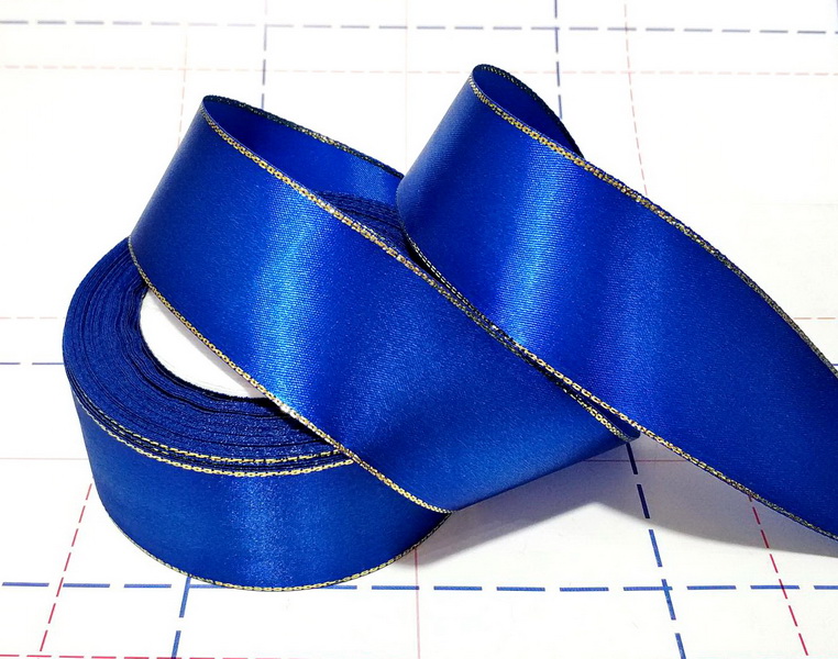 Назад 11 Лента атласная с люрексом 40мм золото 23м/боб (+-1м) оттенок Синий