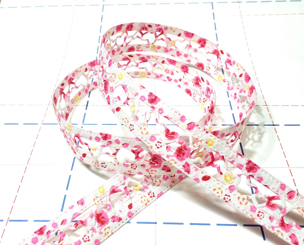 - 11 Лента декоративная 25мм Сердце-1 18,3м/боб Микс розовый