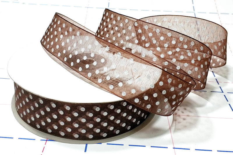 - 11 Лента Органза Горох 25мм Коричневый/белый