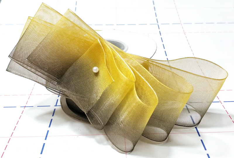 Назад 11 Лента Органза Градиент 40мм 23м/боб (+-1м) Серый/желтый